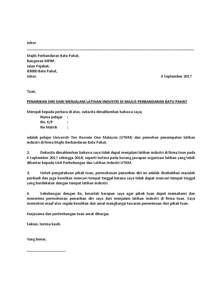 Surat Penarikan Diri Dari Universiti - Surat Rasmi Penarikan Diri Pdf